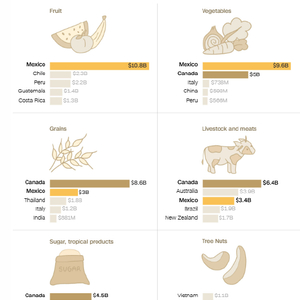 以下是去年按特定品类划分,向美国出口农产品的主要国家: