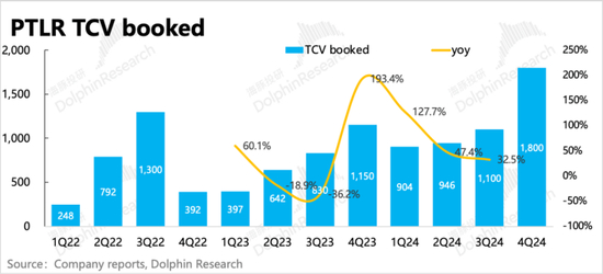 四季度记录新增的合同总价值为18亿,同比增长57%,反而在高基数上加速扩张。