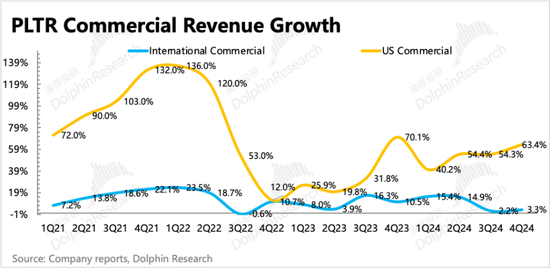 (2)商业市场仍然靠AI带动:四季度商业收入同比增速31%,较二季度有所下滑,主要受国际市场拖累。商业收入的增量主要来源于AIP带来的客户需求。