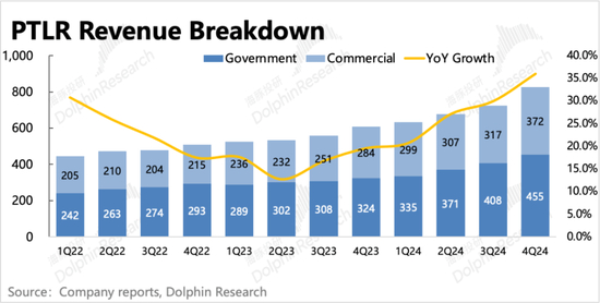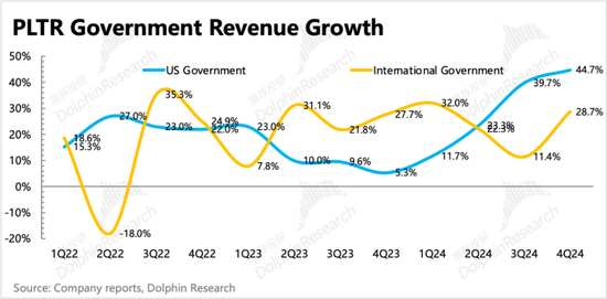 (1)收入贡献高的还是政府收入:Q4政府收入同比增长40%,继续加速扩张,主要来源于美国政府需求的驱动。但国际政府收入也有回暖,主要是英澳等地区的国防部订单。