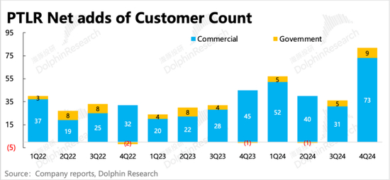 而从最直观的客户数,也偏中长期指标,四季度环比净增82家,其中73家来自于商业客户,9家来自政府机构。