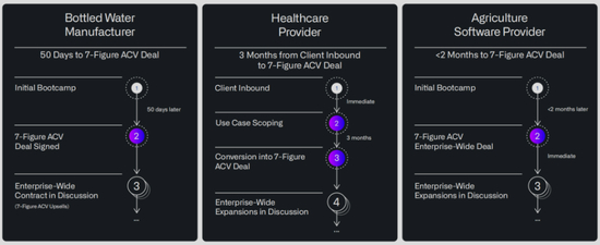 虽然参加Bootcamp的企业客户并不一定会真正成为Palantir的客户,但AIP利用Bootcamp策略,成功压缩了整体客户转化时间(压缩至1-3个月),一定程度上弥补了Palantir的规模化劣势。