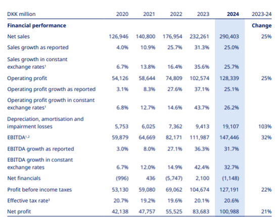 从全年来看,公司总营收2904.03亿丹麦克朗,按固定汇率CER计算同比增长26%,全年净利润增长21%至1009.9亿丹麦克朗,超出预期。