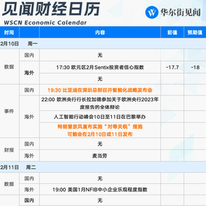 2月10日至2月14日当周重磅财经事件一览,以下均为北京时间: