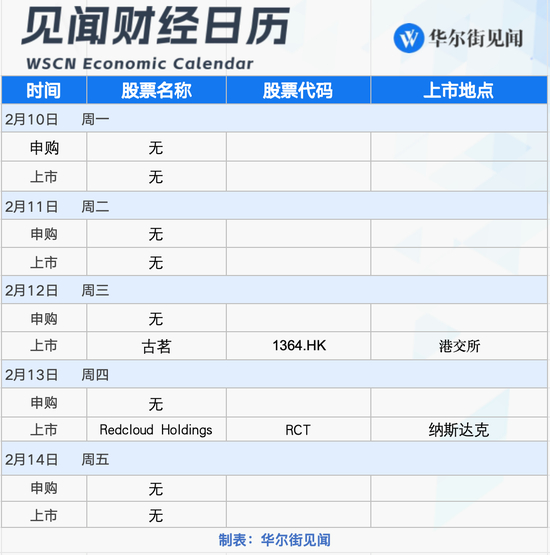当周(2月10日-2月14日)港股股票市场场有1只新股上市,古茗2月12日将登陆港股主板,或成为新茶饮第三股。此外,B2B交易平台Redcloud Holdings Ltd (RCT)将于2月13日周四赴美上市。