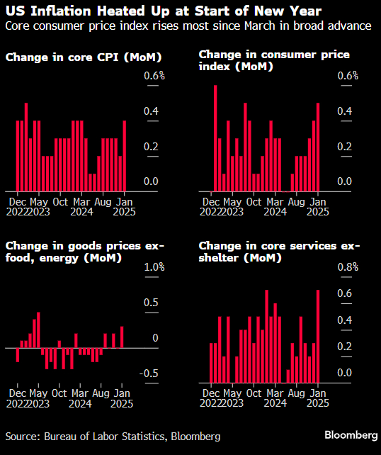 美国劳工统计局周三公布的经季节因素调整后数据显示,上月消费者价格指数(CPI)环比上升0.5%,创2023年8月以来最大升幅。美联储官员密切关注的核心CPI升幅同样大于预期。