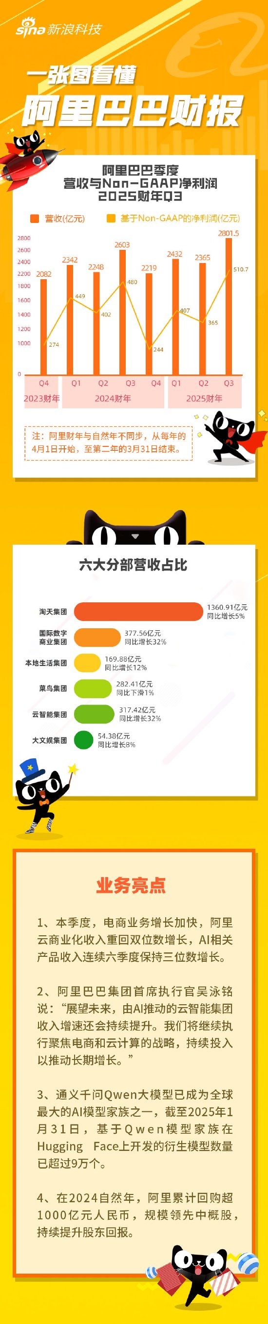 相关新闻:阿里巴巴:2025财年第三财季营收2801.5亿元 同比增长8%