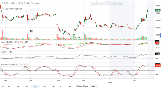 RSI 在本月初开始飙升后,目前为 76.63。这表明多头现在牢牢控制了该股。RSI 还打破了 12 月初开始的下行趋势,这是该股疲软的另一个信号。与 MACD 一样,RSI 目前也处于六个月高位,表明截至目前该股的实力非常强劲。