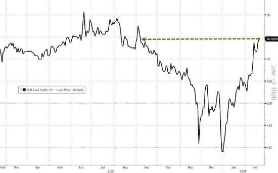 本周,俄罗斯市场对上述动态作出了积极反应,卢布兑美元汇率创下六个月以来的新高。当地时间2月20日,俄中央银行公布官方卢布对美元汇率,2月21日的官方汇率为1美元兑换88.51卢布,自去年9月以来首次升破90。