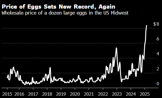 为应对有史以来最严重的禽流感疫情,特朗普政府正在加大鸡蛋进口力度,并加强对养鸡户的支持。这场危机使得鸡蛋价格飙升至超过8美元一打的纪录水平。