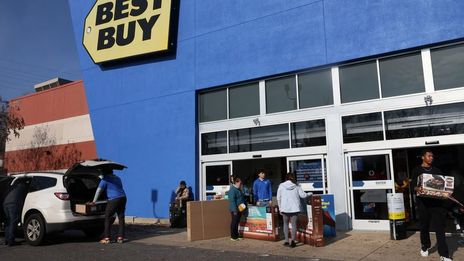 零售商百思买公司周二报告称,在最重要的假日购物季所在的季度,其可比销售额意外增长,主要是因为消费者利用促销活动抢购高端电器和游戏机。