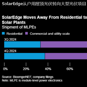 SolarEdge和Tigo这两家上市组件级电力电子(MLPE)设备制造商正在将销售重点转向更大的光伏项目,而非户用屋顶光伏领域。此举可能是由于户用光伏市场增长放缓,尤其是在欧洲,该地区销售乏力导致库存高企。