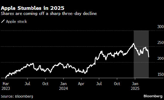 虽然苹果公司的盈利增长稳定,坐拥大量现金,但对于潜在的买家来说,其面临的诸多不利因素令人生畏:关税不确定性对其影响很大、其人工智能(AI)产品屡屡受挫,其与谷歌母公司Alphabet Inc.利润丰厚的合作关系可能面临风险。尽管收入增长放缓,跟其他科技巨头相比,苹果估值仍有溢价,这表明,苹果和其他科技巨头成为避险资产的理由更加难以成立。