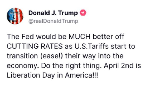 对于特朗普这一表态,有分析人士认为,近期美国政府对贸易伙伴频繁推出关税措施,招致批评和反制,正对美国经济增长前景带来冲击。在此背景下,特朗普对美联储货币政策为其关税措施影响提供对冲的要求更加迫切。
