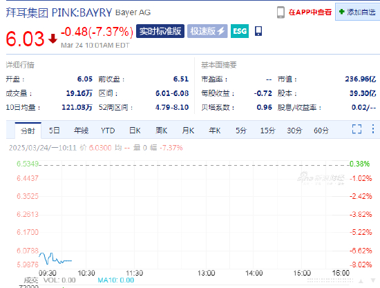 美国法院下令支付 21 亿美元赔偿金后 拜耳股价下跌