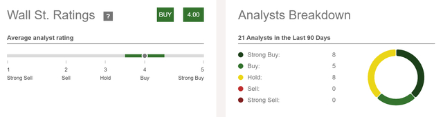 根据华尔街的评级,加拿大自然资源公司目前被评为买入:该公司获得了八位分析师的强力买入评级,五位分析师的买入评级。八位分析师给予该公司持有评级。