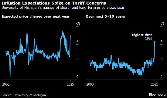最新的调查数据显示,关税相关的不确定性正影响消消费者对经济的看法,并促使他们上调对短期和长期通胀的预期,这对美联储而言可能是一个令人担忧的趋势。此外,目前尚不清楚美国民众在面对价格进一步上涨时会容忍到什么程度才开始减少支出。