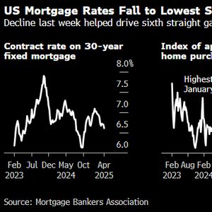 根据抵押贷款银行家协会(MBA)周三公布的数据,在截至4月4日的一周,30年期抵押贷款的合约利率下降9个基点至6.61%。30年期大额抵押贷款和15年期固定利率抵押贷款的利率也下降。