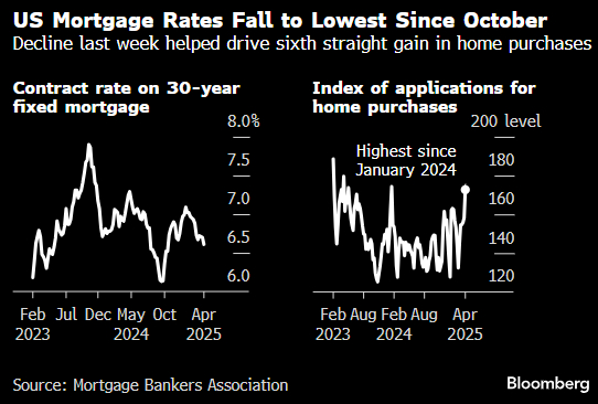 抵押贷款利率追随10年期国债收益率的变化。由于美国总统特朗普的全面关税政策引发了经济衰退担忧和股市暴跌,上周10年期美债收益率跌破4%,为大选之前以来首次。