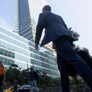 办公室职员在纽约高盛总部附近走过。美国服务业,包括银行业、媒体业、众多科技公司以及零售业和运输业公司,提供了美国绝大多数的就业岗位,并且与全球大多数美国贸易伙伴都存在巨额顺差。