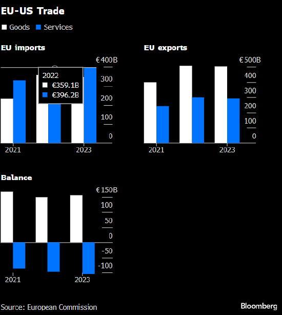 本周,欧盟与美国在弥合贸易分歧方面几乎未取得实质性进展。特朗普政府官员暗示,美国对欧盟征收的大部分关税将不会取消。
