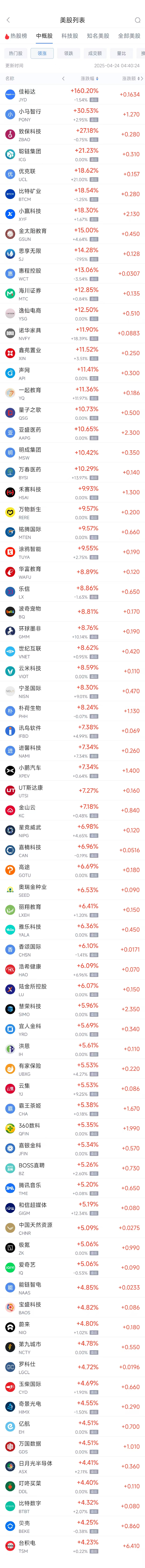领涨中概股列表:
