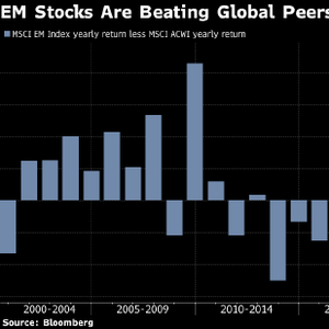 新兴市场股指今年迄今已上涨1.4%,势将五年来首次超过跑赢全球其他地区主要股指,一项汇率指标已上涨2.7%。