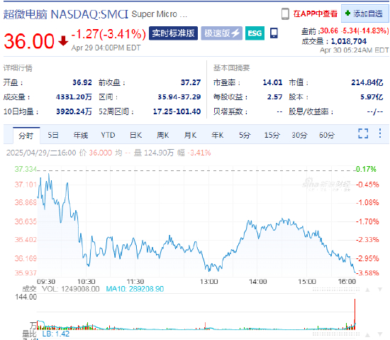 超微电脑下调营收和利润预期 盘前大跌15%