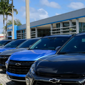2025 年 4 月 5 日星期六,在美国佛罗里达州迈阿密的一家通用汽车公司雪佛兰经销商处,展示着待售的新车。