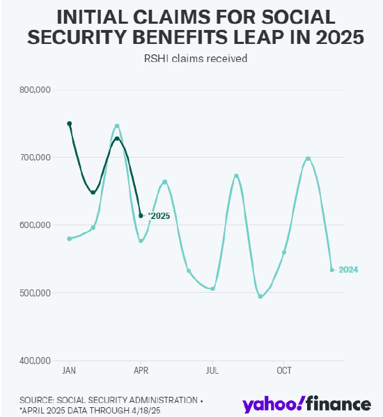 社会保障管理局的一名官员在 4 月的一次业务会议上表示,自 1 月以来,该机构没想到会出现 “大量激增” 的情况,并强调了他所说的 “退休工人福利首次申请数量大幅增加” 这一现象。