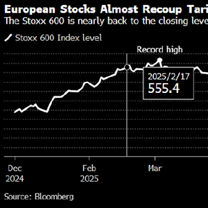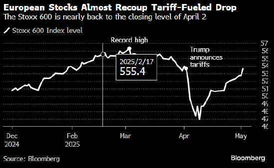 欧股九连涨,几乎收复美国总统唐纳德·特朗普关税公告引发的全部失地。