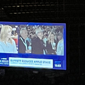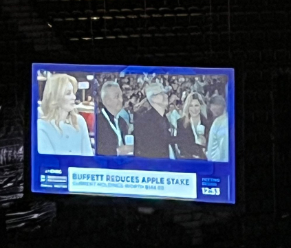 巴菲特2025年股东大会开场,巴菲特介绍,苹果CEO蒂姆·库克来现场参会。