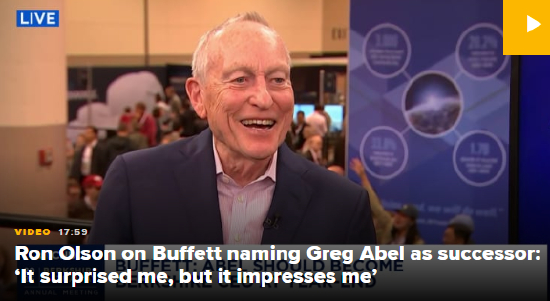 罗恩・奥尔森谈巴菲特任命格雷格・阿贝尔为继任者:“这让我感到意外,但也让我印象深刻”