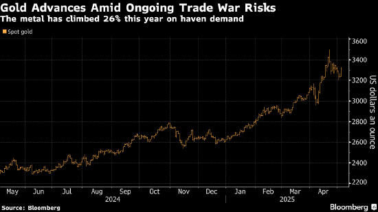 今年以来,金价已累计上涨26%,4月曾一度升破每盎司3,500美元的历史高位,后在过去几周有所回落。上涨主要受特朗普贸易和地缘政治政策上的高度不确定性引发的避险需求推动。此外,投机性需求以及全球央行的买盘也推升了金价。
