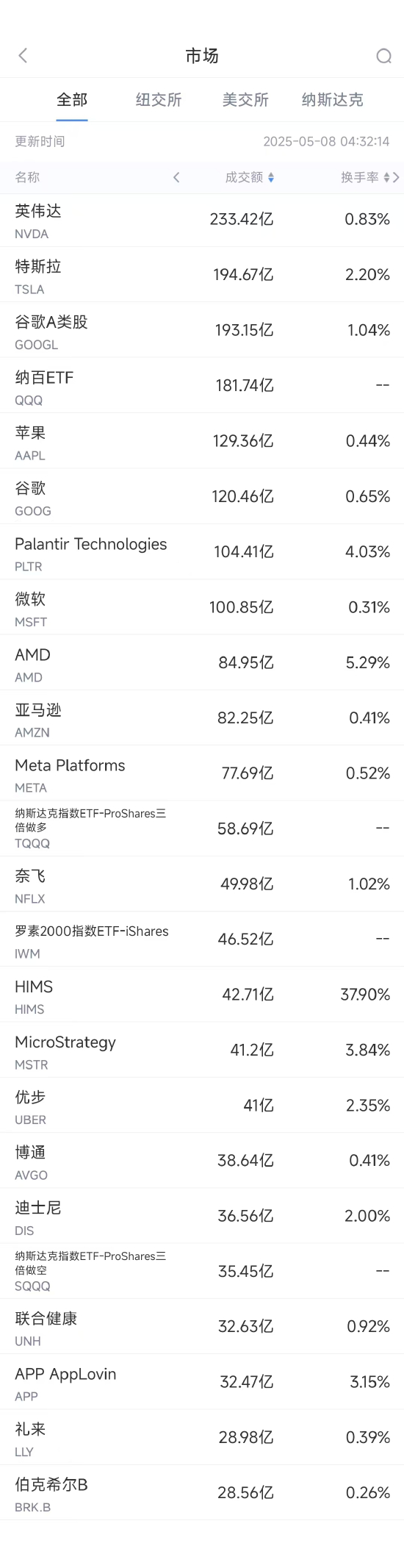 5月7日美股成交额前20:谷歌收跌7.3%,浏览器主导地位面临挑战