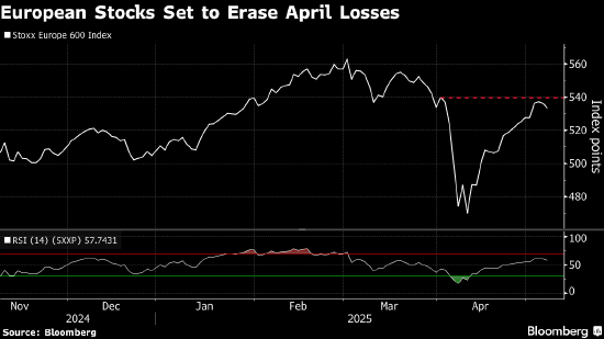 斯托克欧洲600指数收涨0.4%。值得注意的是,欧元区斯托克50指数升至4月2日特朗普宣布“解放日”关税以来的最高收盘水平。工业、科技、旅游、零售和银行等周期性股票领涨,而公用事业、医疗保健和房地产等防御性股票表现落后。