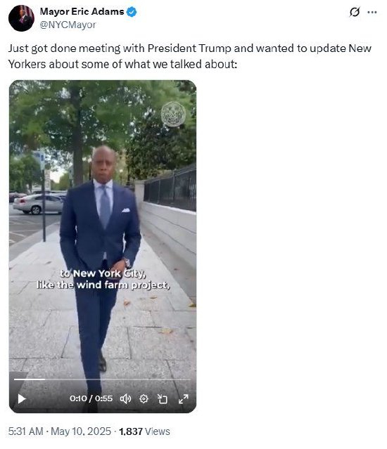 当地时间周五,美国纽约市市长亚当斯在社交平台X发布视频表示,他刚刚与特朗普总统会面完毕,与其讨论的议题对纽约而言十分重要。