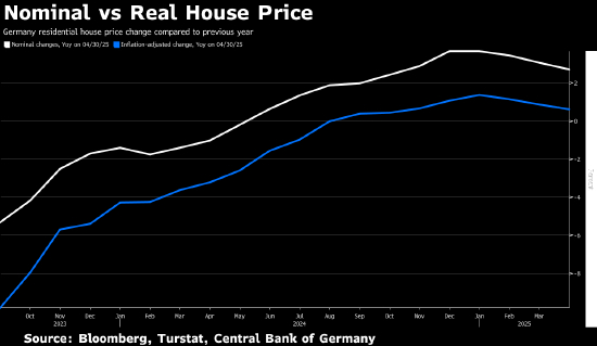 德国经通胀调整后的房价 4 月同比上涨 0.6%