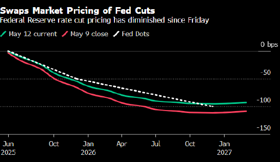 交易员下调对美联储今年降息押注,目前预计2025年将仅有两次降息。