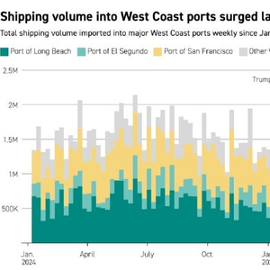 太平洋商船航运协会会长迈克・雅各布(Mike Jacob)表示,进口量的上升可能是航运公司对上个月90天关税暂缓措施的回应。他表示:“我们预计会出现一些问题,因为供应链在稳定有序的情况下运转得最好,而目前发生的情况完全不是稳定有序的。”