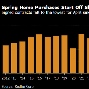 4月通常是交易高峰期,天气转暖会吸引买家和卖家入市。但根据Redfin的季调数据显示,今年4月的签约量降至2020年疫情封锁以来的同期最低水平。与去年4月相比,交易数量下滑3%。