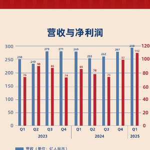 网易发布2025年第一季度财报:营收288亿(游戏240亿+有道13亿+云音乐19亿+创新及其他16亿),同比增长7.4%。经调净利润112亿元,同比增长31.7%。第一季度,网易研发投入44亿元,研发投入强度达15%。