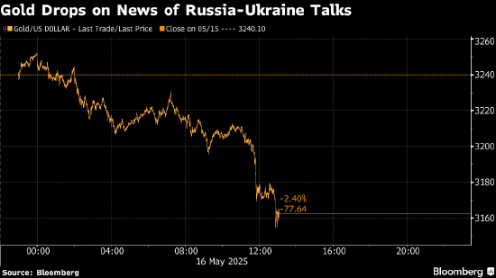 金价本周下跌逾4%,目前交易价格接近每盎司3170美元。由土耳其外交部长Hakan Fidan主持,双方谈判团队周五在伊斯坦布尔的多尔玛巴赫切宫举行会谈。达成协议结束冲突的可能性可能会导致避险需求减弱,从而进一步压低黄金价格。