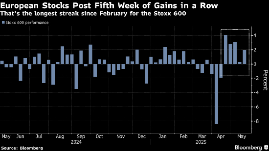 欧洲股市连续第五周上涨 贸易紧张局势缓解提振市场情绪
