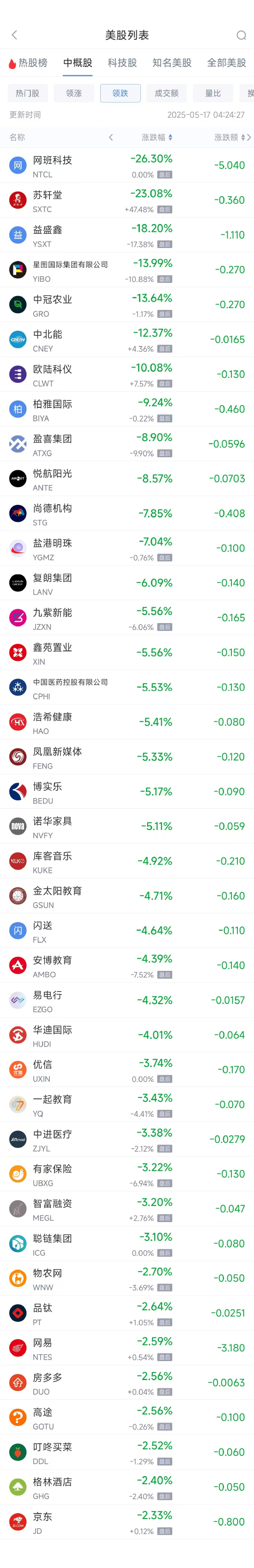 (截图来自新浪财经APP 行情-美股-中概股热门板块)下载新浪财经APP