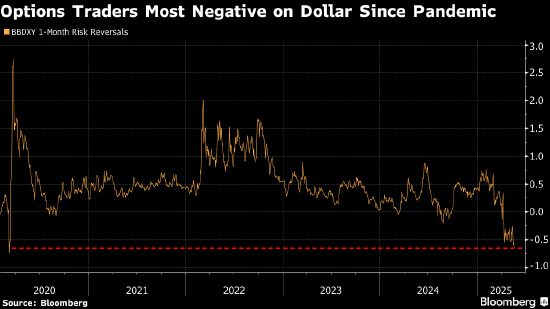 期权显示投资者继续增持美元看跌敞口,一个月期风险逆转对美元的看跌程度达到 2020年初疫情爆发以来最大。