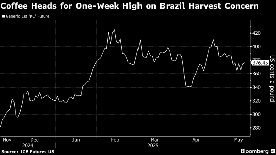 阿拉比卡咖啡价格延续涨势,因市场担忧恶劣天气将影响最大产地巴西的咖啡产量。