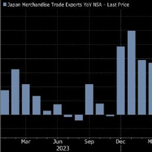 日本财务省周三公布, 4月出口同比增长2%;略低于预期中值2.5%。 进口下降2.2%,预测中值为下降4.2%。