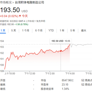 周二美股盘前,台积电ADR小幅下跌约0.8%。台积电ADR在1月创下高点后一路下跌,至4月最低时跌幅高达37%。不过近期已收复超过一半跌幅。彭博汇总的分析师预期显示,该股未来12个月仍有约11%的上涨空间。
