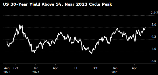 这加剧了持续数周的债券抛售,凸显投资者对华盛顿推进法案令债务不断攀升的做法愈加失望。固收市场跌势也鼓舞了那些反对特朗普减税计划的保守派共和党议员。在白宫定于今天下午举行一场关键的谈判会议之前,其中一些议员在社交媒体上指出了债券大跌及其传递的信息。